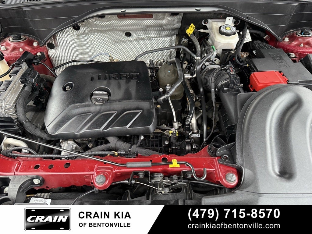 1 Type-A & 1 Type-C USB Charging-Only Ports, 120-Volt Power Outlet, 2-Way Power Driver Lumbar Seat Adjuster, 4-Way Manual Front Passenger Seat Adjuster, 4-Wheel Disc Brakes, 5.45 Axle Ratio, 6 Speakers, 6-Speaker Audio System Feature, 8-Way Power Driver Seat Adjuster, 8 Diagonal Color Touchscreen Display, ABS brakes, Air Conditioning, Alloy wheels, AM/FM radio, Apple CarPlay/Android Auto, Auto High-beam Headlights, Brake assist, Bumpers: body-color, Cabin Humidity Sensor, Cloth Seat Trim, Compass, Convenience Package, Delay-off headlights, Driver & Front Passenger Illuminated Vanity Mirrors, Driver Confidence Package, Driver door bin, Driver vanity mirror, Dual front impact airbags, Dual front side impact airbags, Electronic Stability Control, Emergency communication system: OnStar and Chevrolet connected services capable, Exterior Parking Camera Rear, Flat-Folding Front Passenger Seatback, Front anti-roll bar, Front Bucket Seats, Front Center Armrest, Front fog lights, Front reading lights, Front wheel independent suspension, Fully automatic headlights, Heated door mirrors, Heated Driver & Front Passenger Seats, Heated front seats, Illuminated entry, Inside Rear-View Auto-Dimming Mirror, Knee airbag, Lane Change Alert w/Side Blind Zone Alert, Low tire pressure warning, Occupant sensing airbag, Overhead airbag, Overhead console, Panic alarm, Passenger door bin, Passenger vanity mirror, Performance Package, Power door mirrors, Power driver seat, Power steering, Power windows, Preferred Equipment Group 1LT, Radio data system, Radio: Chevrolet Infotainment 3 System, Rear Cross Traffic Alert, Rear Park Assist, Rear side impact airbag, Rear window defroster, Rear window wiper, Remote keyless entry, Ride & Handling Suspension, Roof rack: rails only, Security system, Single-Zone Auto Climate Control Air Conditioning, SiriusXM Radio, Speed control, Split folding rear seat, Spoiler, Steering wheel mounted audio controls, Tachometer, Telescoping steering wheel, Tilt steering wheel, Traction control, Trip computer, Variably intermittent wipers, Wheels: 17 High Gloss Black Machined Aluminum, Wireless Apple CarPlay/Android Auto.