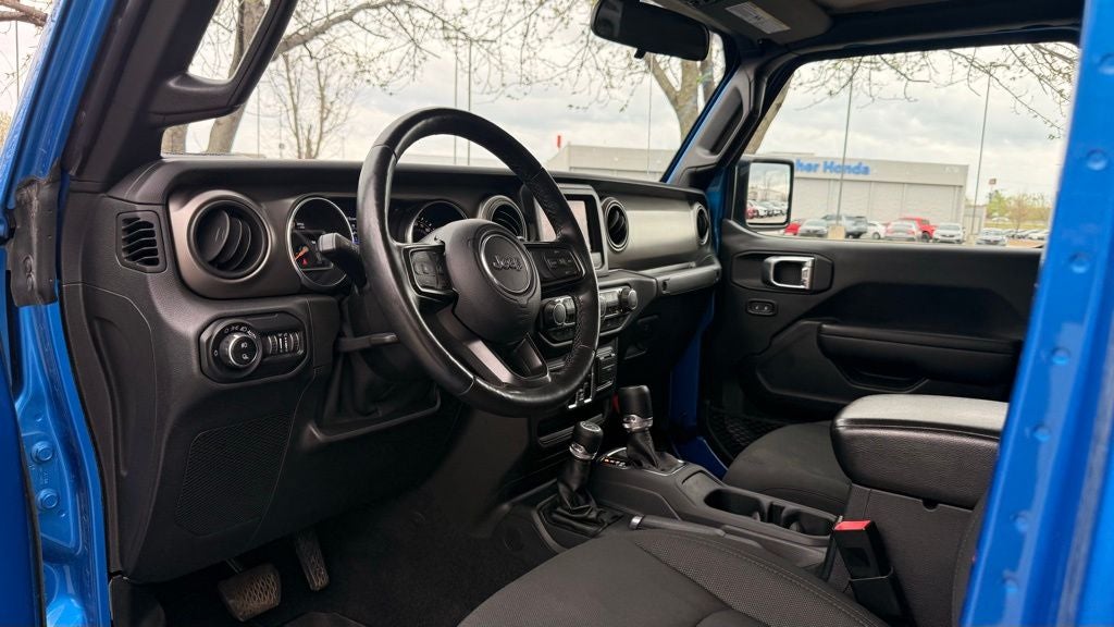 2021 Jeep Gladiator 4WD 3.6L V6 24V VVT 8-Speed Automatic Gladiator Sport LIFT & TIRES, 4D Crew Cab, 8-Speed Automatic, 4WD, Hydro Blue Pearlcoat, Black Cloth, 110 mph Vehicle Max Speed Calibration, 240 Amp Alternator, 3.73 Rear Axle Ratio, 4-Wheel Disc Brakes, 7.0 Touch Screen Display, 8 Speakers, ABS brakes, Air Conditioning, Air Conditioning w/Auto Temperature Control, AM/FM radio, Anti-Lock 4-Wheel Disc Heavy Duty Brakes, Apple CarPlay, Automatic Headlamps, Black 3-Piece Hard Top, Body Color Fender Flares (2-Piece), Brake assist, Class IV Hitch Receiver, Cloth Low-Back Bucket Seats, Cluster 7.0 TFT Color Display, Cold Weather Group, Compass, Convenience Group, Daytime Running Lamp System, Deep Tint Sunscreen Windows, Delay-off headlights, Driver door bin, Driver vanity mirror, Dual front impact airbags, Dual front side impact airbags, Electronic Stability Control, For More Info, Call 800-643-2112, Freedom Panel Storage Bag, Front 1-Touch Down Power Windows, Front anti-roll bar, Front Bucket Seats, Front Center Armrest w/Storage, Front fog lights, Front reading lights, Google Android Auto, GPS Antenna Input, Heated Front Seats, Heated Steering Wheel, Heavy-Duty Engine Cooling, Integrated Center Stack Radio, Integrated roll-over protection, Integrated Voice Command w/Bluetooth®, Leather Wrapped Steering Wheel, Low tire pressure warning, Molded in Color Bumper w/Accent Color, MOPAR All-Weather Floor Mats (DISC), Mopar Black Tubular Side Steps, Normal Duty Plus Suspension, Normal Duty Suspension, Occupant sensing airbag, Outside temperature display, ParkView Rear Back-Up Camera, Passenger door bin, Passenger vanity mirror, Popular Equipment Package, Power Heated Mirrors, Power steering, Power Tailgate Lock, Quick Order Package 23S Sport S, Quick Order Package 24S Sport S, Radio data system, Radio: Uconnect 3 w/5 Display, Radio: Uconnect 4 w/7 Display, Rear anti-roll bar, Rear reading lights, Rear Sliding Window, Rear Window Defroster, Remote Keyless Entry, Security Alarm, SiriusXM Radio Service, SiriusXM Satellite Radio, Speed control, Speed Sensitive Power Locks, Split folding rear seat, Sport S, Steering wheel mounted audio controls, Sun Visors w/Illuminated Vanity Mirrors, Tachometer, Technology Group, Telescoping steering wheel, Tilt steering wheel, Traction control, Trailer Hitch Zoom, Trailer Tow Package, Trip computer, Universal Garage Door Opener, USB Host Flip, Variably intermittent wipers, Wheels: 17 x 7.5 Black Steel Styled, Wheels: 17 x 7.5 Tech Silver Alum (DISC).