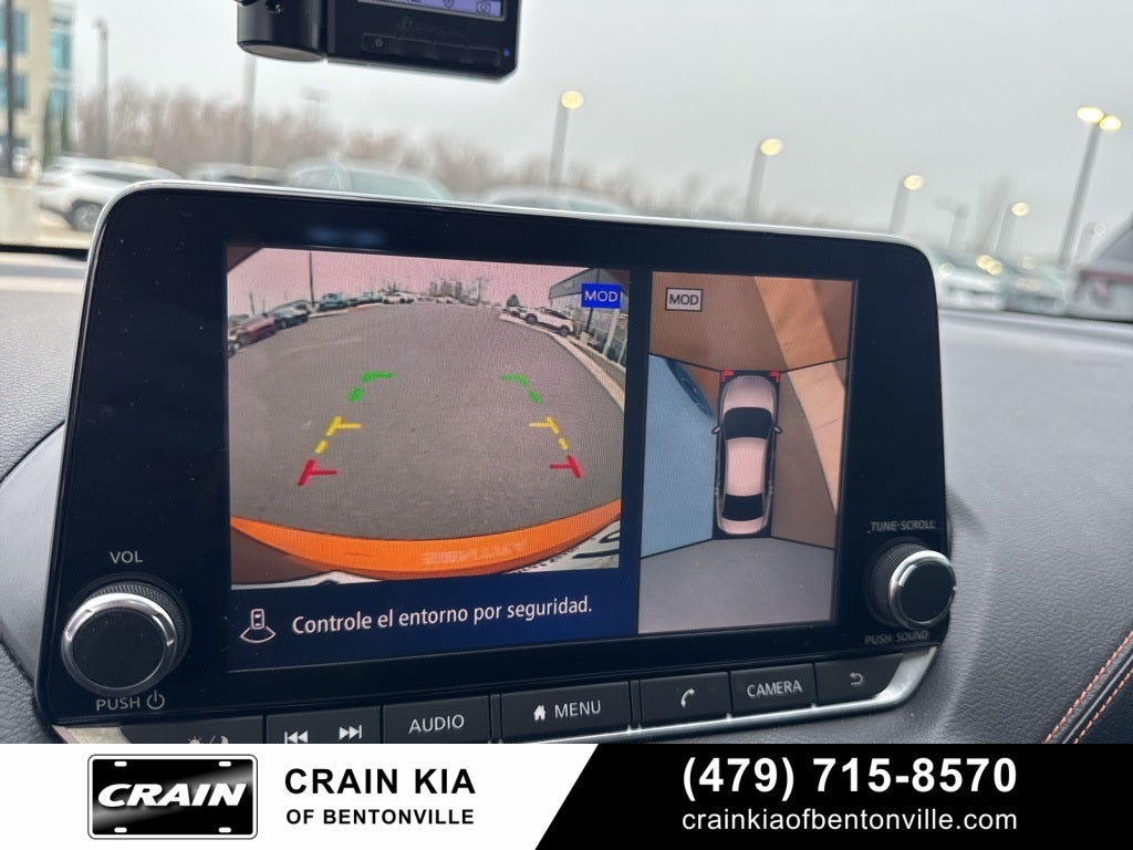 CVT with Xtronic, Sport Cloth, 18 Alloy Wheels, 2-Tone Premium Paint, 4-Wheel Disc Brakes, 6 Speakers, 6-Way Power Driver's Seat, 8-Speaker Bose Premium Audio System, ABS brakes, Air Conditioning, Alloy wheels, AM/FM radio: SiriusXM, Auto High-beam Headlights, Auto-Dimming Rear-View Mirror, Automatic temperature control, Blind Spot Warning, Brake assist, Bumpers: body-color, Carpeted Floor Mats w/Trunk Mat, Clear Rear Bumper Protector, Delay-off headlights, Driver door bin, Driver vanity mirror, Dual front impact airbags, Dual front side impact airbags, Electronic Stability Control, Four wheel independent suspension, Front anti-roll bar, Front Bucket Seats, Front Center Armrest, Front dual zone A/C, Front fog lights, Front reading lights, Fully automatic headlights, Heated door mirrors, Heated Front Seats, Heated Steering Wheel, Illuminated entry, Intelligent Around View Monitor (I-AVM), Knee airbag, Leather Shift Knob, Low tire pressure warning, Moving Object Detection, Nissan Connect Services Powered By SiriusXM, NissanConnect featuring Apple CarPlay and Android Auto, Occupant sensing airbag, Outside temperature display, Overhead airbag, Overhead console, Panic alarm, Passenger door bin, Passenger vanity mirror, Power door mirrors, Power Sliding Glass Moonroof w/Tilt Feature, Power steering, Power windows, Prima-Tex Seat Trim, Radio data system, Radio: AM/FM w/RDS/MP3/Aux-In, Rear anti-roll bar, Rear Parking Sensors, Rear seat center armrest, Rear side impact airbag, Rear window defroster, Remote keyless entry, Security system, Speed control, Speed-sensing steering, Split folding rear seat, Spoiler, Sport Cloth Seat Trim, SR Premium Package, Steering wheel mounted audio controls, Sunvisors w/Illuminated Vanity Mirrors, Tachometer, Telescoping steering wheel, Thin Lens LED Headlights w/LED DTRL, Tilt steering wheel, Traction control, Trip computer, Turn signal indicator mirrors, Variably intermittent wipers, Wi-Fi Hotspot.