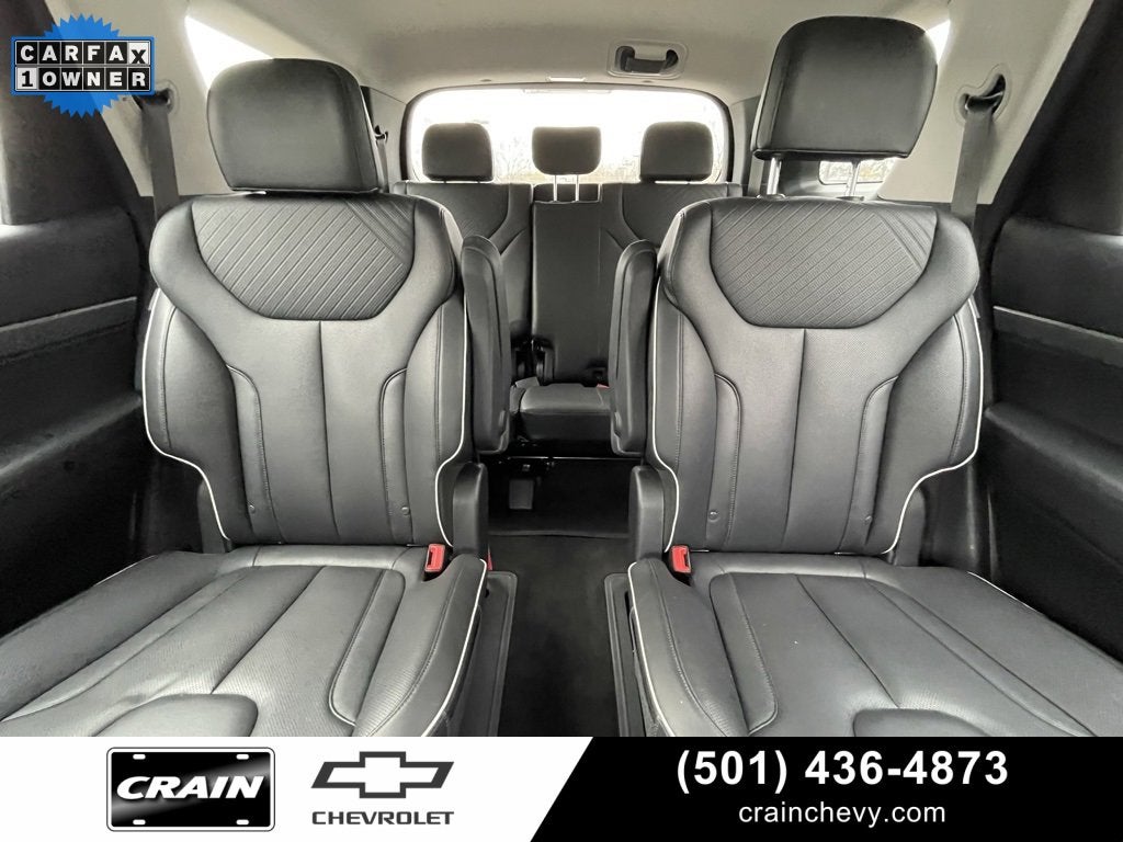 100 Hour Love It or Leave It Exchange Policy, 100 Year or 100,000 Mile Power-Train Warranty, *** 1 Owner CARFAX ***, Navigation / GPS, Leather, Heated Seats, Cruise Control, Steering Wheel Controls, Keyless Entry, Bluetooth®, USB / AUV Ports, MP3 Player, SiriusXM Satellite Radio, Remote Start System, Power Liftgate, 2nd Row Captain Charis / Bucket Seats, Wireless Apple CarPlay, Wireless Google Android Auto, Alloy Wheels, Premium Wheels, Blind Spot Warning System, Lane Keep Assist, Premium Audio, Wi-Fi Hotspot Capability, Color Touchscreen Display, Backup / Rear View Camera, Palisade SEL, 4D Sport Utility, V6, 8-Speed Automatic with SHIFTRONIC, AWD, Typhoon Silver, Black w/Leather Seat Trim, 3.648 Axle Ratio, 3rd row seats: split-bench, 4-Wheel Disc Brakes, 6 Speakers, ABS brakes, Air Conditioning, Alloy wheels, AM/FM radio: SiriusXM, Apple CarPlay & Android Auto, Auto High-beam Headlights, Auto-dimming door mirrors, Auto-dimming Rear-View mirror, Automatic temperature control, Brake assist, Bumpers: body-color, Delay-off headlights, Driver door bin, Driver vanity mirror, Dual front impact airbags, Dual front side impact airbags, Electronic Stability Control, Emergency communication system, Exterior Parking Camera Rear, Four wheel independent suspension, Front anti-roll bar, Front Bucket Seats, Front Center Armrest, Front dual zone A/C, Front reading lights, Fully automatic headlights, H-Tex Leatherette Seat Trim, Heated door mirrors, Heated Front Bucket Seats, Heated front seats, Illuminated entry, Knee airbag, Low tire pressure warning, Navigation System, Occupant sensing airbag, Option Group 01, Outside temperature display, Overhead airbag, Overhead console, Panic alarm, Passenger door bin, Passenger vanity mirror, Power door mirrors, Power driver seat, Power Liftgate, Power passenger seat, Power steering, Power windows, Radio data system, Radio: AM/FM/MP3 Audio System, Rear air conditioning, Rear anti-roll bar, Rear audio controls, Rear reading lights, Rear side impact airbag, Rear window defroster, Rear window wiper, Reclining 3rd row seat, Remote keyless entry, Security system, Speed control, Speed-sensing steering, Split folding rear seat, Spoiler, Steering wheel mounted audio controls, Tachometer, Telescoping steering wheel, Tilt steering wheel, Traction control, Trip computer, Turn signal indicator mirrors, Variably intermittent wipers, Wheels: 18 x 7.5J Painted Finish Alloy.